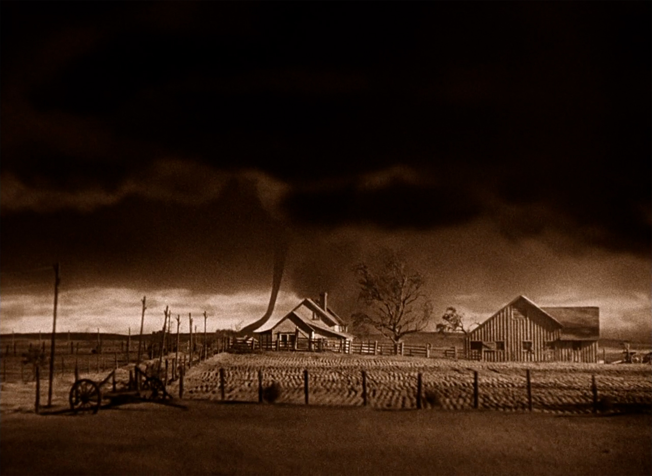 Per rendere l’idea del tornado in lontananza, l’asso degli effetti speciali – Arnold Gillespie – fece costruire un enorme oggetto di stoffa a forma d’imbuto, la cui parte superiore era legata a un porta lampada che si spostava per l’intera lunghezza del set, seguendo un percorso ad S.