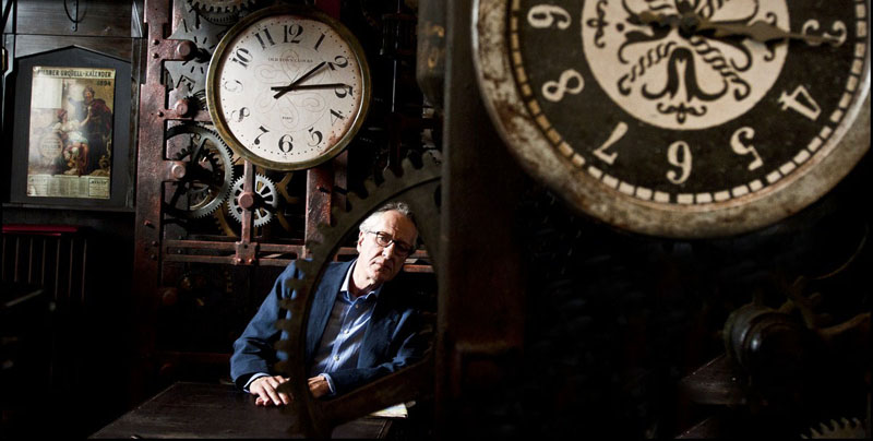 Il puzzle d’ingranaggi seminato da Jim Sturgess per che costruiscono l’automa ne La Migliore Offerta dove Geoffrey Rush prende un caffè sovrastato dai meccanismi degli orologi del bar a Praga.
