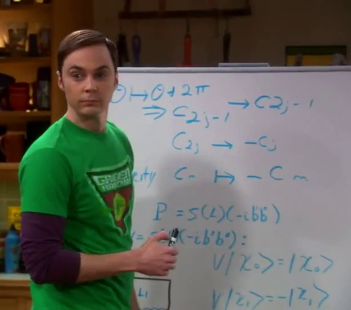 1- Le lavagne di Sheldon (Jim Parsons) che si vedono nella serie rappresentano in ogni episodio un’equazione diversa. Le equazioni sono scritte tutte da David Saltzberg, professore di fisica e astronomia alla University of California di Los Angeles. Il professor Saltzberg provvede anche a scrivere i dialoghi che i personaggi effettuano sugli elementi legati alla fisica e all’astrofisica.