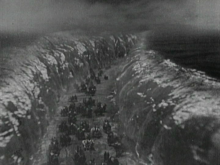 1923 – I Dieci Comandamenti: il gelly-sea nel capolavoro in bianconero. DeMille giocò, per la prima volta, con la gelatina insieme a Roy Pomeroy, l’artigiano dei trucchi visivi che creò l’effetto del Mar Rosso posizionando due strati di gelatina blu l’uno accanto all’altro, fatti riscaldare fino a farli sciogliere, quindi montando la scena girata al contrario.