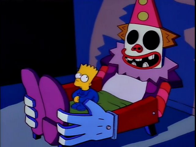4 Publicato 7 ottobre 2016 alle 640 × 480 li Chi ha paura del pagliaccio? ← Precedenti Successivi → Il clown-bed di Bart Simpson nei I Simpson (1989)