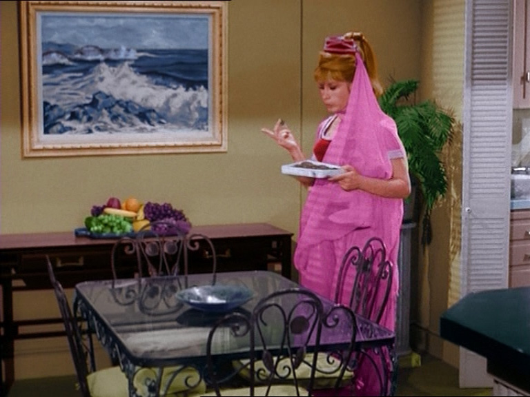 Durante la prima stagione, sorpresa! Barbara Eden scopre di essere incinta. Spaventata, corre da Sheldon convinta che l’avrebbero fatta sparire con un puff!… invece no! La soluzione geniale? Coprirla con montagne di veli e stoffe svolazzanti, trasformando la gravidanza in un vero e proprio effetto speciale “magico” del primo anno dello show.