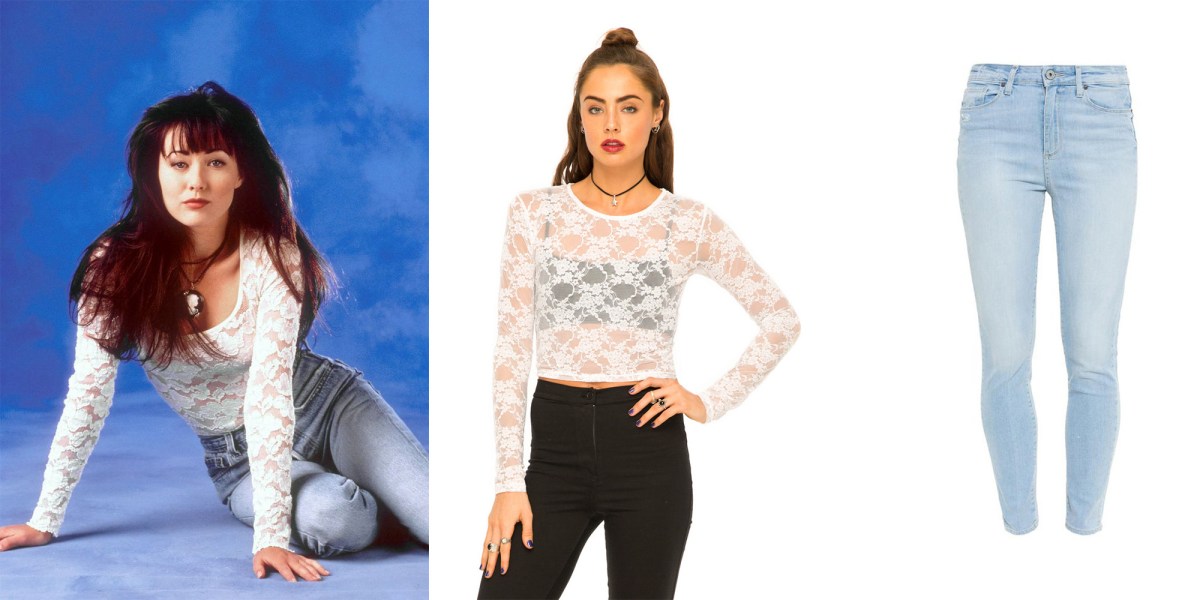 2 Publicato 5 ottobre 2015 alle 2000 × 1000 li Beverly Hills 90210 venticinque anni dopo: Rifatti un look come Kelly, Brenda e Donna ← Precedenti Successivi → Il top in pizzo coi denim a vita alta indossati da Brenda: Motel Bonnie Long Sleeve Crop Top in White Daffodil Lace £12 su motelrocks.com / Eileen Fisher Stretch Boyfriend Jeans, Faded Blue $178.00 su neimanmarcus.com