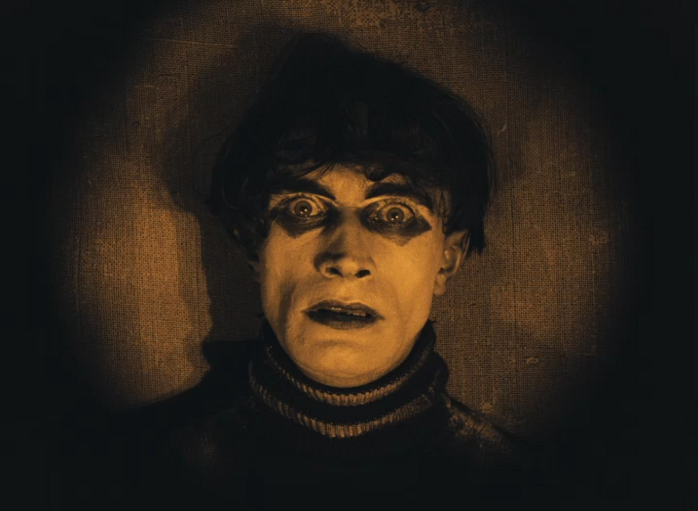 8 Publicato 16 novembre 2015 alle 2400 × 1757 li Il gabinetto del dottor Caligari, 100 anni in 10 curiosità ← Precedenti Successivi → I personaggi recitano col volto appesantito da grottesco make-up, in particolare il sonnambulo Cesare (Conrad Veidt) che sfoggia occhi bistrati di nero.