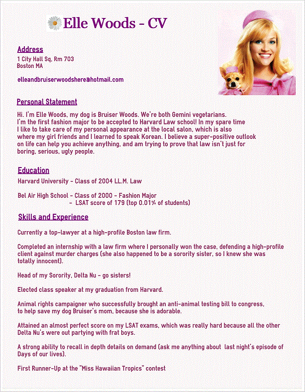 5 Publicato 13 luglio 2016 alle 627 × 807 li 10 lezioni di vita da La rivincita delle bionde ← Precedenti Successivi → Il curriculum stampato su carta rosa profumata aggiunge un tocco in più.