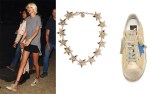 - Il grunge-chic al festival di Coachella: THE GREAT. The Shirttail Tee €132.37 su shopbop.com + Versace Gold Medusa Star Necklace + Golden Goose V Star 2 Sneakers €511.22 su shopbop.com