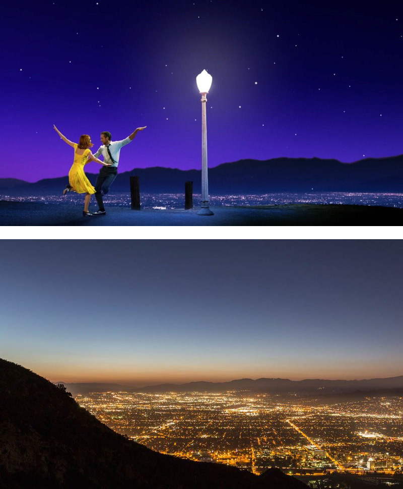 La celebre sequenza con Mia e Sebastian che improvvisano un tip-tap sulle note di «A Lovely Night» è stata girata in un parcheggio chiamato «Cathy’s Corner»: si trova sulla Mt. Hollywood Drive (da non confondere con la leggendaria Mulholland Dr) a Griffith Park che si estende per ben 4.300 acri.