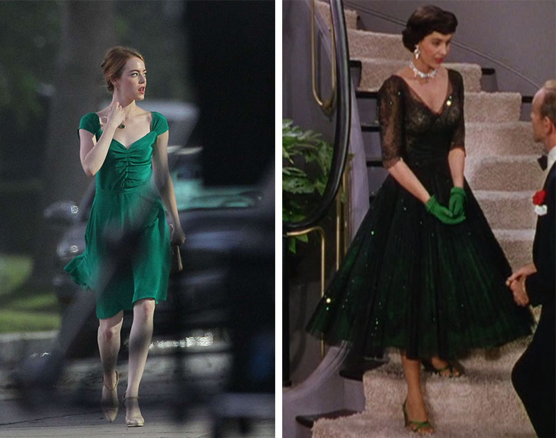 5 Publicato 27 gennaio 2017 alle 800 × 630 li La La Land, i segreti del guardaroba di Emma Stone ← Precedenti Successivi → Il vestito verde smeraldo deriva dal look di Cyd Charisse in Spettacolo di varietà (1953)