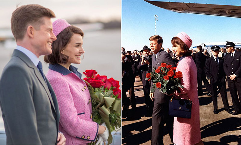 5- Un compito più arduo è stato, certamente, quello di entrare nell’iconico completo rosa Chanel imbrattato di sangue. La costume designer francese ha accettato la sfida ri-creandolo a mano presso la casa di moda newyorkese di Chez Ninon, la storica fashion house che realizzò il tailleur originale.