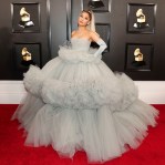 Performer della serata, candidata 5 volte ai Grammy Awards 2020, Ariana Grande è tornata a casa a mani vuote ma si è assicurata il titolo di regina fashion della serata grazie alla memorabile maratona-look. Due abiti sul red carpet e tre durante la cerimonia. Dal grey gown Gimbattista Valli all’abito verde smeraldo di Givenchy.