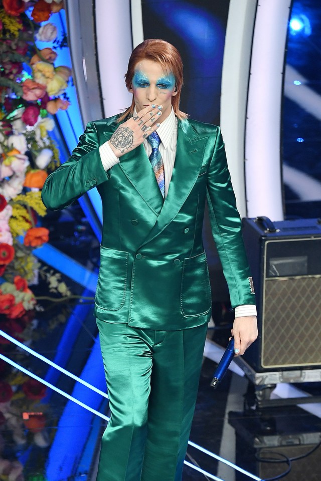 GettyImages-1204510902 Publicato 7 febbraio 2020 alle 640 × 960 li Sanremo 2020, voti ai best look della terza serata ← Precedenti Successivi → Achille Lauro in Gucci diventa Ziggy Stardust/David Bowie, durante la terza serata di Sanremo 2020.
