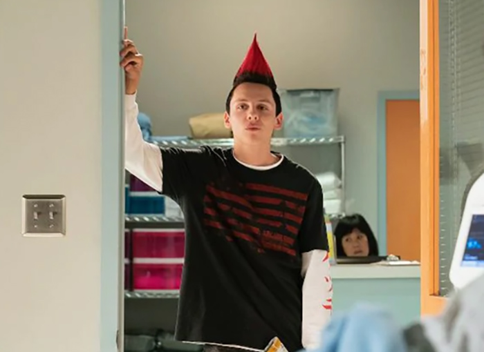 L’antieroe punk della serie sfoggia la cresta del 21enne Jacob Bertrand. La sua acconciatura anarchica richiede al team di truccatori e parrucchieri circa un’ora, ogni giorno, prima delle riprese.