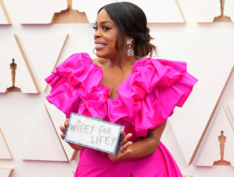 La clutch Tyler Ellis sfoggiata da H.E.R.La controversa pochette in capelli umani di Julia Fox.La clutch Sophia Webster di Niecy NashLa stereo-clutch di Diane Warren. La sculpture bag di Eva von Bahr