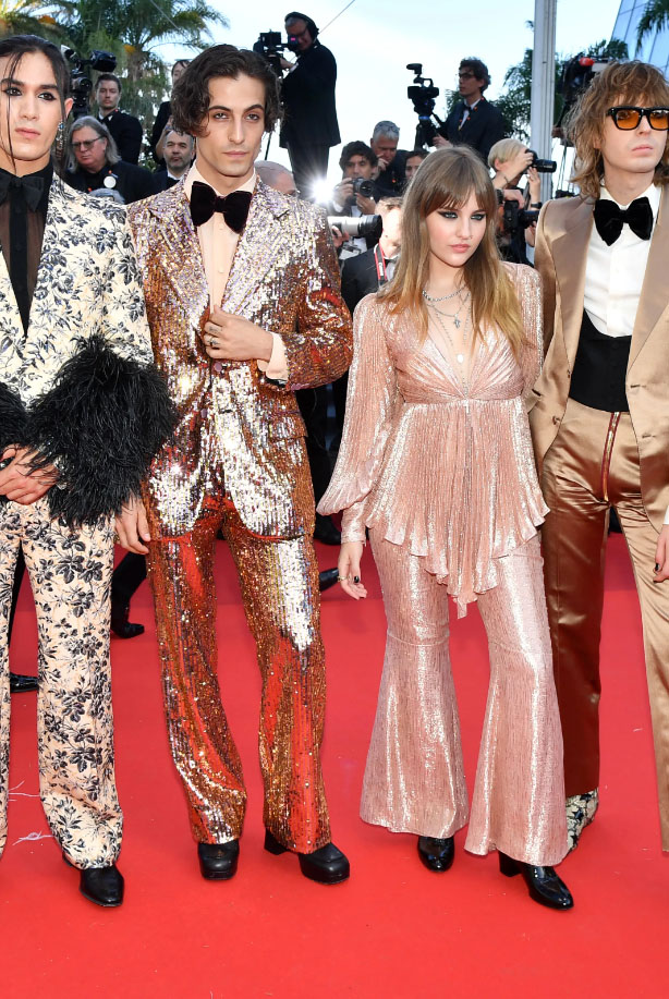 Rebecca Hall in GucciElle Fanning in Giorgio Armani PrivéAlicia Vikander in Louis VuittonCara Delevingne in BalmainSharon Stone in Dolce & GabbanaEmily Ratajkowski in Miu MiuElsa Hoks in ValentinoNoomi Rapace in MoschinoBella Hadid in vintage VersaceMåneskin in Gucci