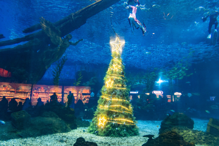 L’albero di Natale subaqueo al Chongqing Sunac Sea World in Cina
