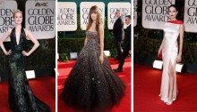 Olivia Wilde in dolce attesa abbaglia in scintillante Gucci Première, ricamato con paillettes metalliche e cristalli di smeraldo. Jessica Chastain sinuosa in Givenchy Haute Couture. Amy Adams, vertiginosa con scollatura American Hustle-style, seduce in rosso Valentino bicolor. Jennifer Lawrence intrigante e radiosa in Christian Dior Haute Couture e orecchini-chandelier di diamante by…